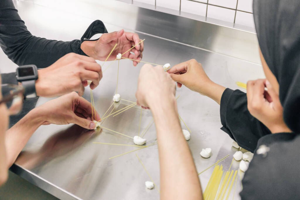 - Participants are divided into small teams and assigned a station in a commercial kitchen.